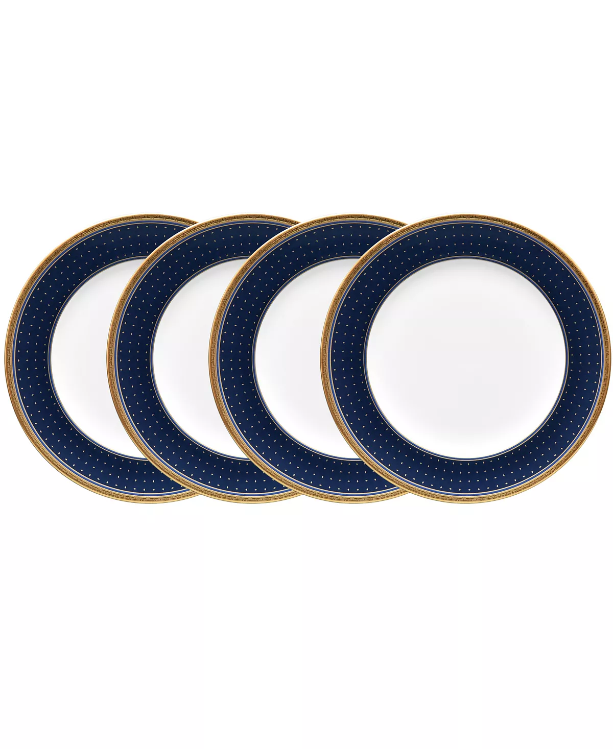 Blueshire is an elegant, modern design on bone China. Featuring a repeating mosaic of a simple diamond shape depicted vertically and horizontally, the three-dimensional design in shades of blue is paired with a gold-tone band featuring raised interlocking T-bars.