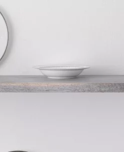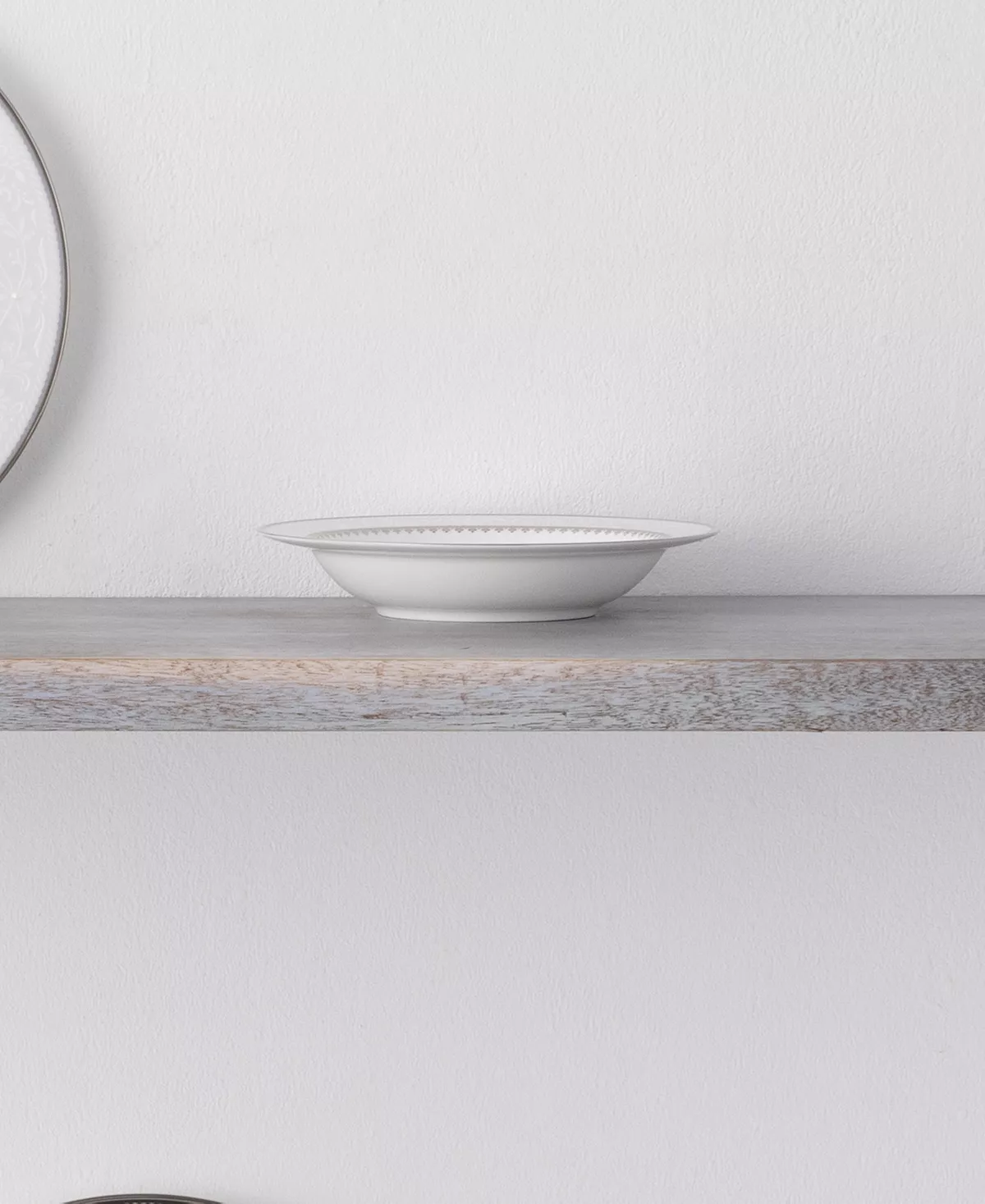 Brocato is a bone China dinnerware collection adorned with an antique-like floral lace design over a misty gray. This design is accompanied by a platinum band and a hint of cadet gray. Brocato offers place setting components as well as an array of serving pieces and accessories.
