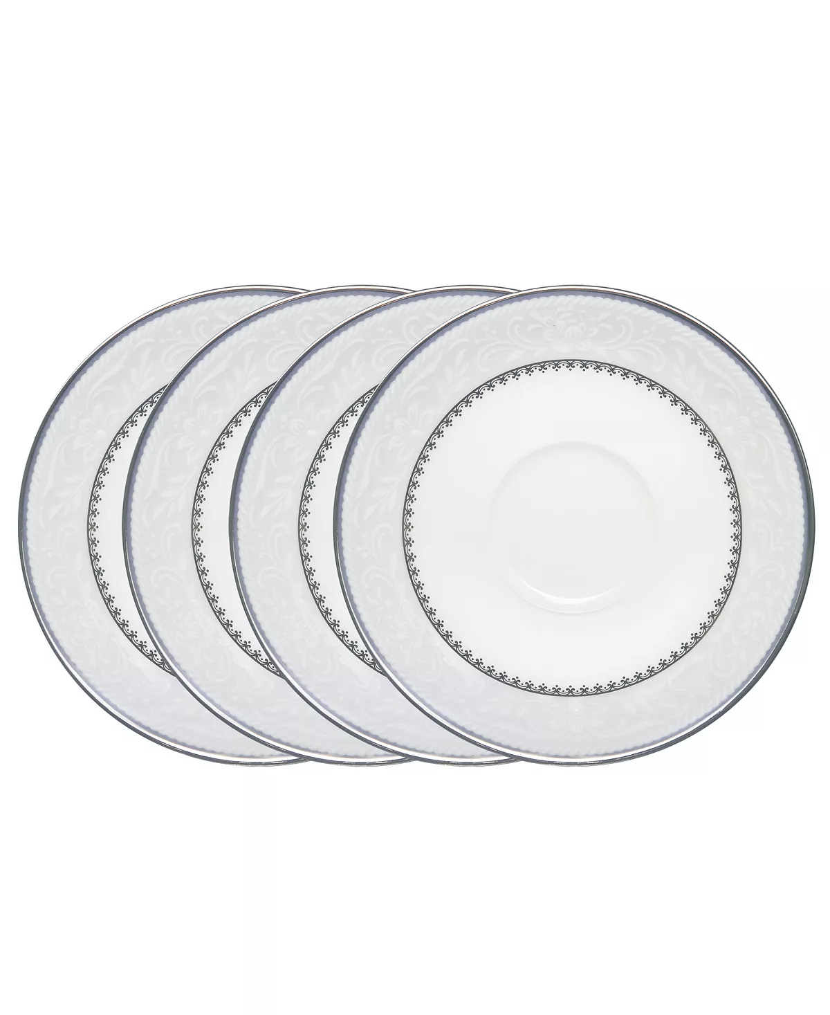Brocato is a bone China dinnerware collection adorned with an antique-like floral lace design over a misty gray. This design is accompanied by a platinum band and a hint of cadet gray. Brocato offers place setting components as well as an array of serving pieces and accessories.