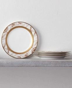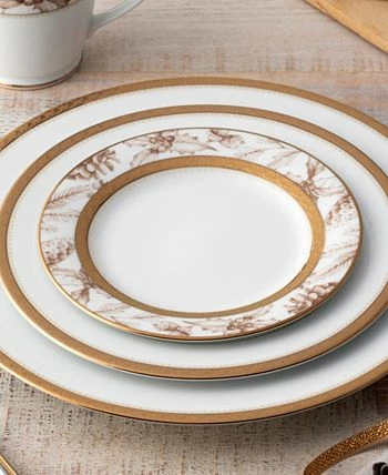 Charlotta Gold is a beautifully classic collection in white porcelain, featuring the modern addition of microwave-safe gold. The gold banding features flowers and scrolling leaves, perfect for elegant dinners while casual enough for daily use.