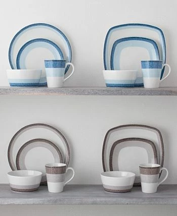 The Colorscapes Layers collection features multiple colors, modern design, product durability. Each piece has a subtle texture of coiling concentric circles. Items include a gradation of color bands in each colorway. All items are crafted in durable white porcelain and are designed for daily use.