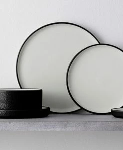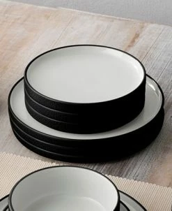 Distinctly modern, Noritake’s Colortex Stone Stax dinner plates offer a clean, minimalist look in durable porcelain with a glossy pebble texture on the outside and bright-white glazed interiors. Each fits together to stack for space-saving storage.