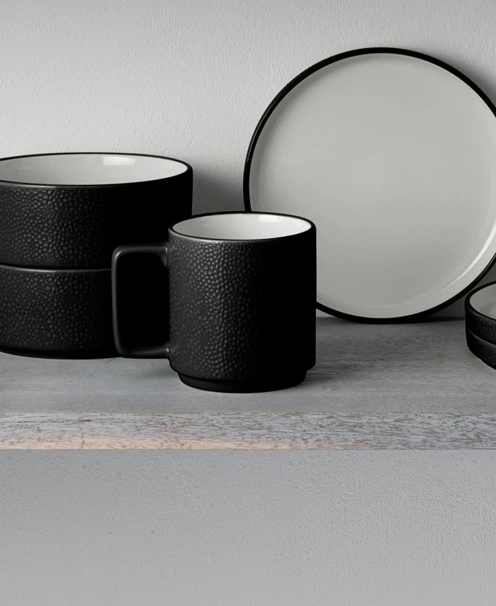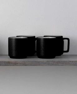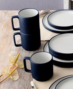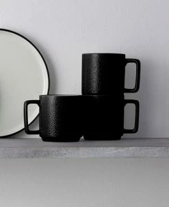 Distinctly modern, Noritake’s Colortex Stone Stax mugs offer a clean, minimalist look in durable porcelain with a glossy pebble texture on the outside and bright-white glazed interiors. Each fits together to stack for space-saving storage.