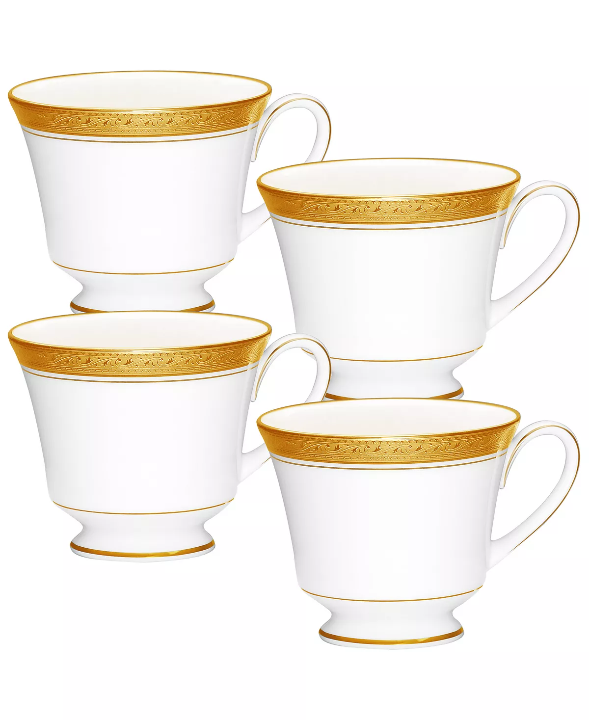 Crestwood gold brings sophisticated elegance to the table. This stunning pattern features crisp bright white porcelain, paired with a gold-tone band for a look of elegant simplicity. The exterior gold-tone band is etched with a design of scrolling leaves.