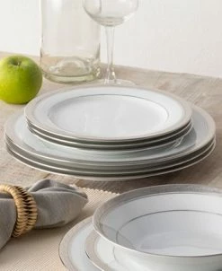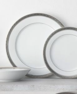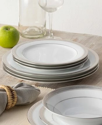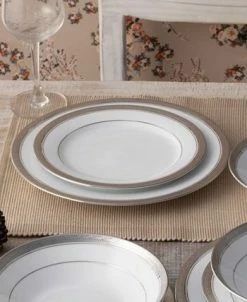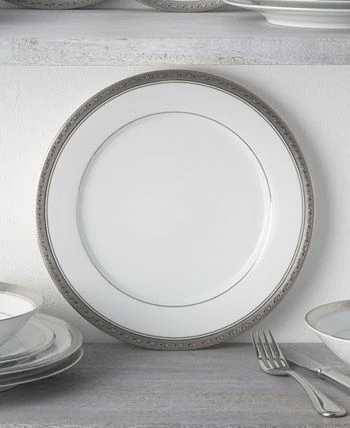 Crestwood platinum brings sophisticated elegance to the table. This stunning pattern features crisp bright white porcelain, paired with a platinum band for a look of elegant simplicity. The exterior platinum band is etched with a design of scrolling leaves.
