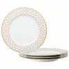 Crochet is a stunning, strongly-geometric dinnerware pattern on bone china. The combination of gold banding and grey design elements brings a mixed-metal look, paired with a deep red color for maximum impact and ambience.