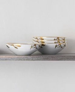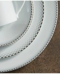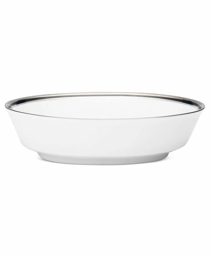 An instant classic, the Austin Platinum vegetable bowl from Noritake layers ribbons of black, patterned platinum bands and shimmering dots in white fine china.