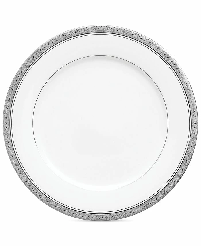 The unparalleled style of Noritake china has been gracefully setting tables for more than ninety years. The dinner plates from the formal Crestwood Platinum dinnerware and dishes collection feature crisp white china embellished with a shimmering border of interlocking scrolled leaves and an edge of polished platinum.
