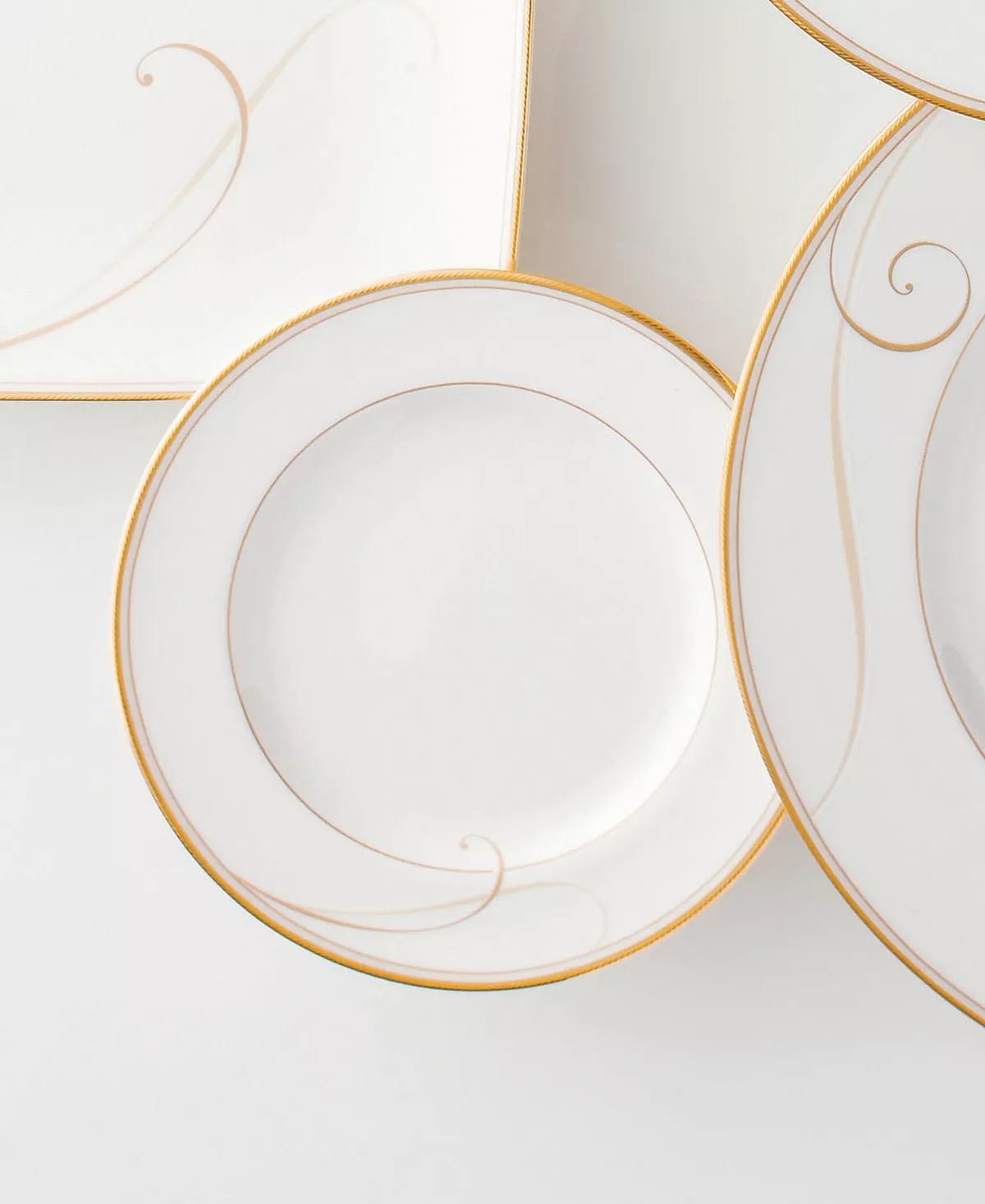 Golden wave brings elegance to the table. Golden wave features a scroll motif that is interpreted as waves. Washing against the rim of the plate, the golden waves create a bold yet elegant presentation.