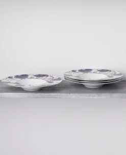 Jubilant days platinum is an abstract celebration, featuring a base of random swatches of cobalt blue, and splashes of shimmering platinum on white porcelain. Jubilant days platinum offers place setting components as well as an array of serving pieces and accessories.