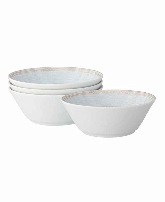 Linen road was inspired by the texture of linen fabric. The soft feeling of the fabric texture is enhanced with bands of implied gold-tone embroidery on white porcelain. Linen road offers place setting components as well as an array of serving pieces and accessories.