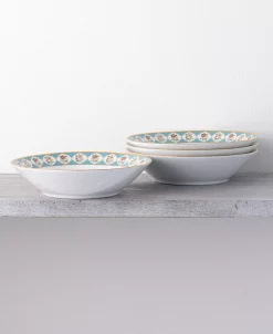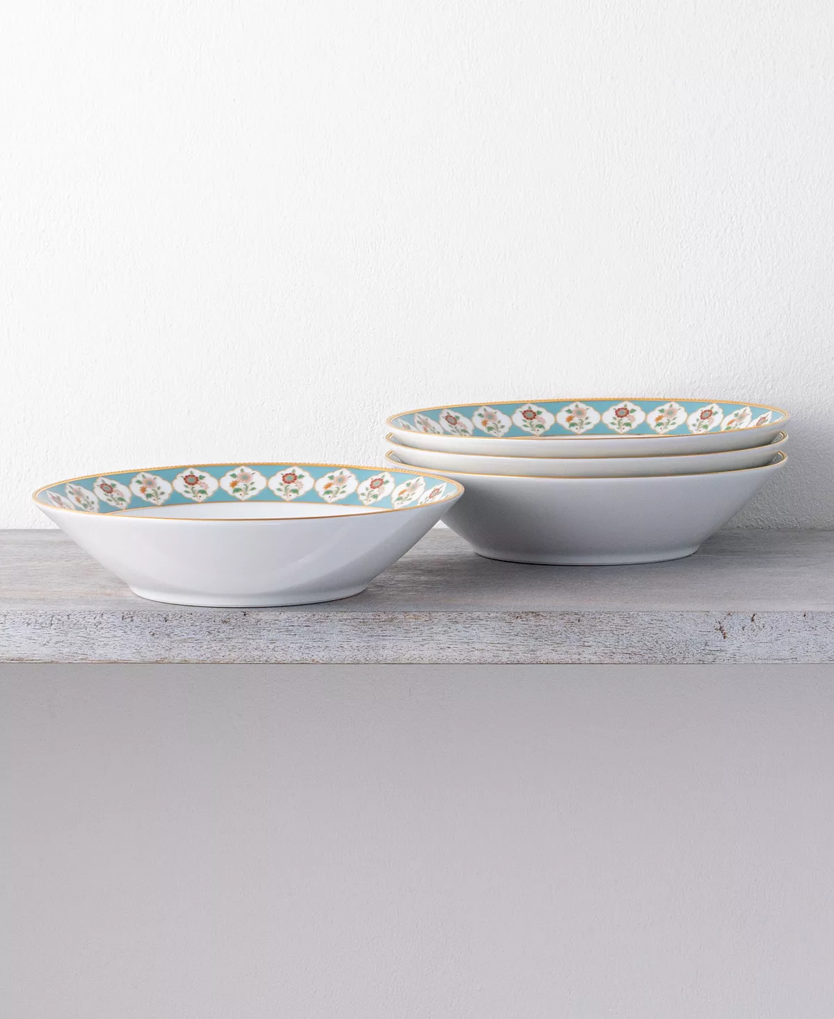 Lodi’s Morning has a durable pattern. The soup bowls are adorned with striking floral with touches of turquoise, saffron, and ruby.