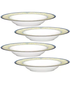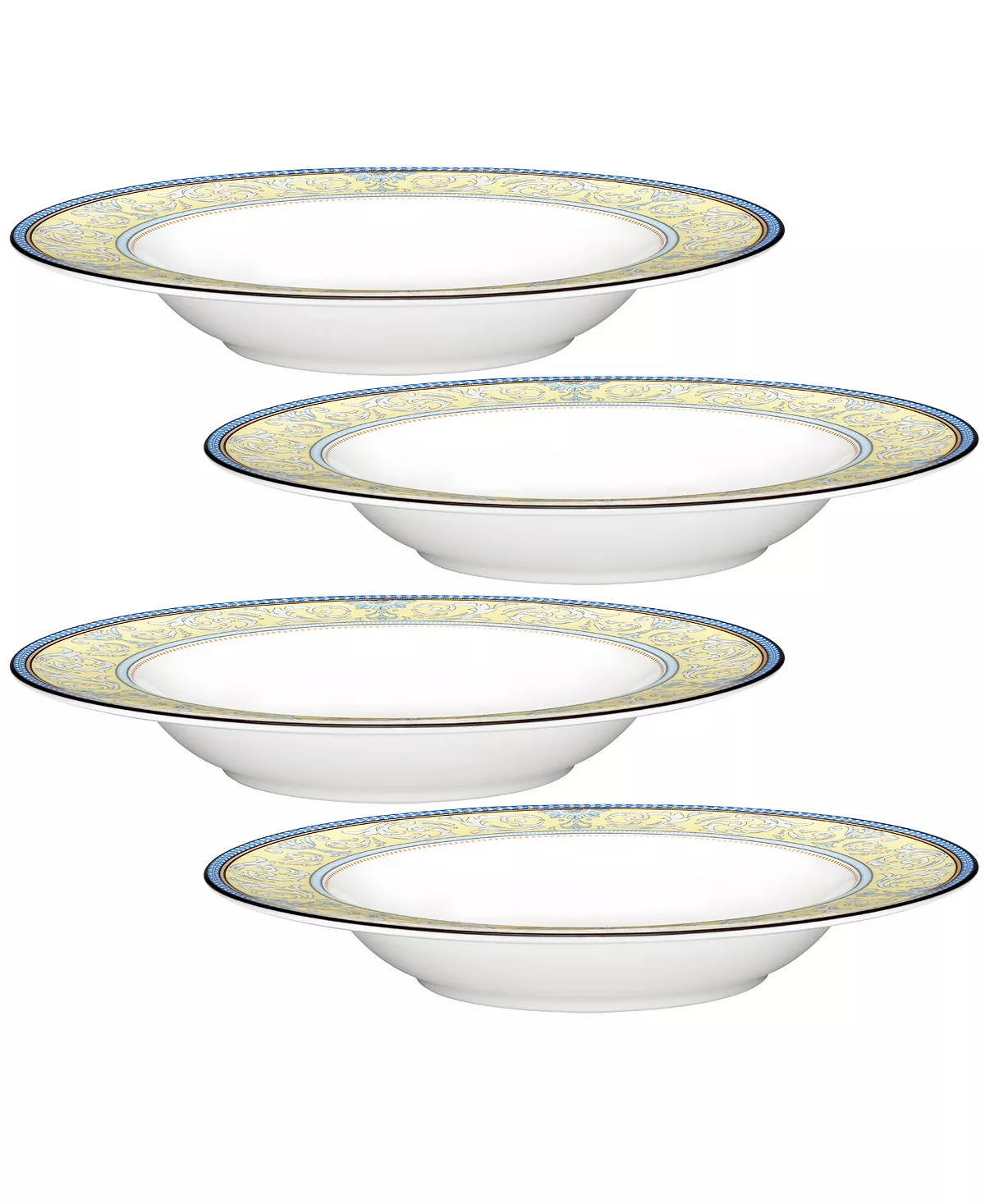 Menorca Palace is inspired by Italian pottery designs from the Renaissance period. This versatile pattern features classic scrolling design elements in yellow and blue. The non-metallic banding on this bone china pattern results in Menorca Palace being both microwave and dishwasher safe.