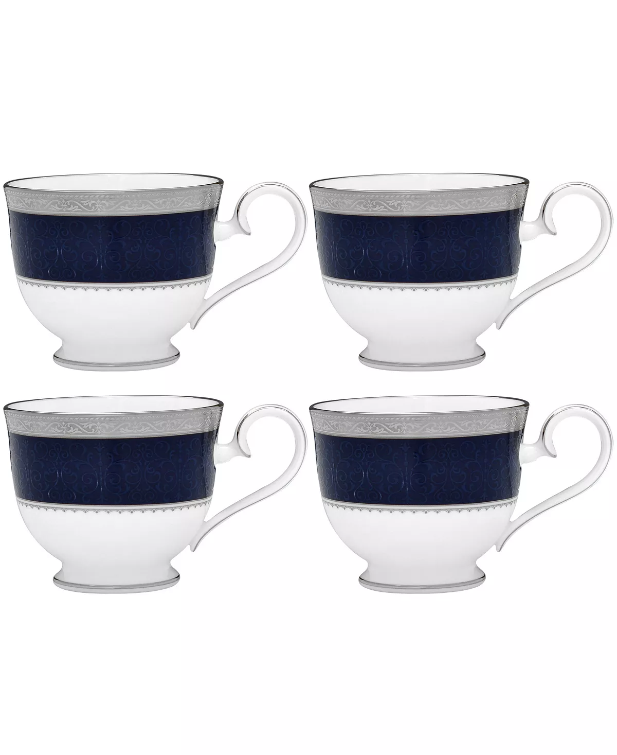 Odessa cobalt platinum features a wide, etched platinum band, coupled with a wide inner band of delicate soft blue floral scrolls over a deep, cobalt blue. Crafted in fine bone China, Odessa cobalt platinum offers place setting components as well as an array of serving pieces and accessories.