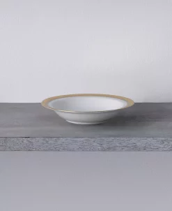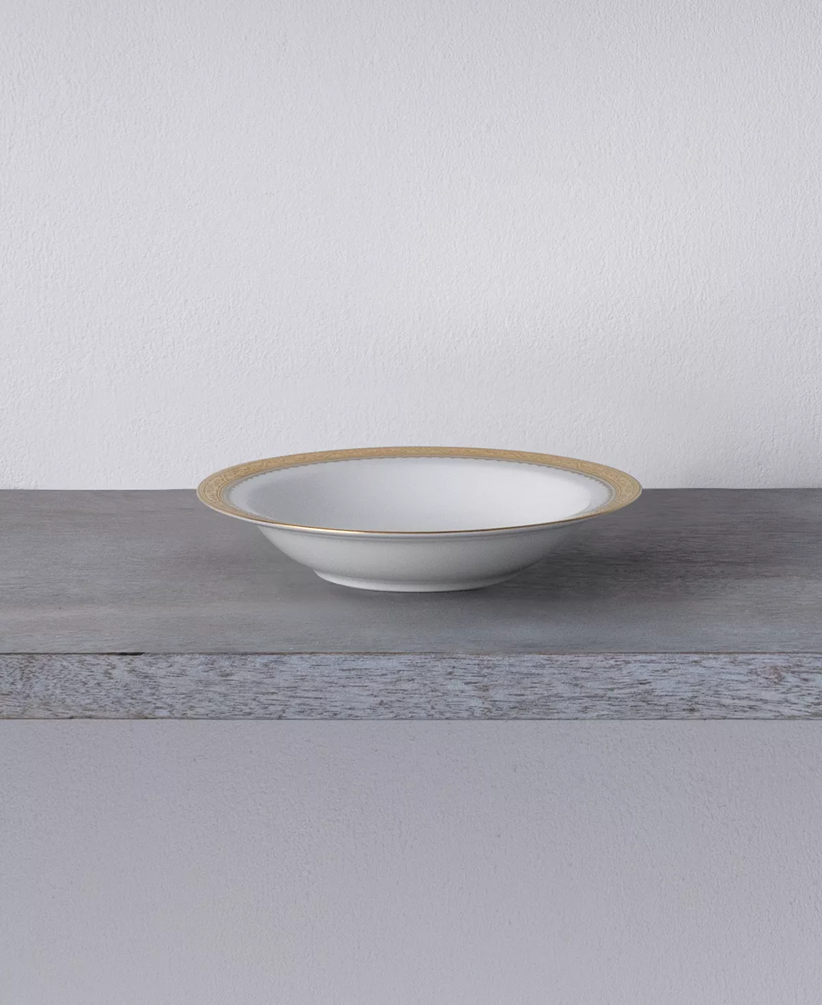 Odessa gold features a wide, etched gold-tone band, coupled with an inner band of delicate white floral over a whisper of dove gray. Crafted in fine bone China, Odessa gold offers place setting components as well as an array of serving pieces and accessories.