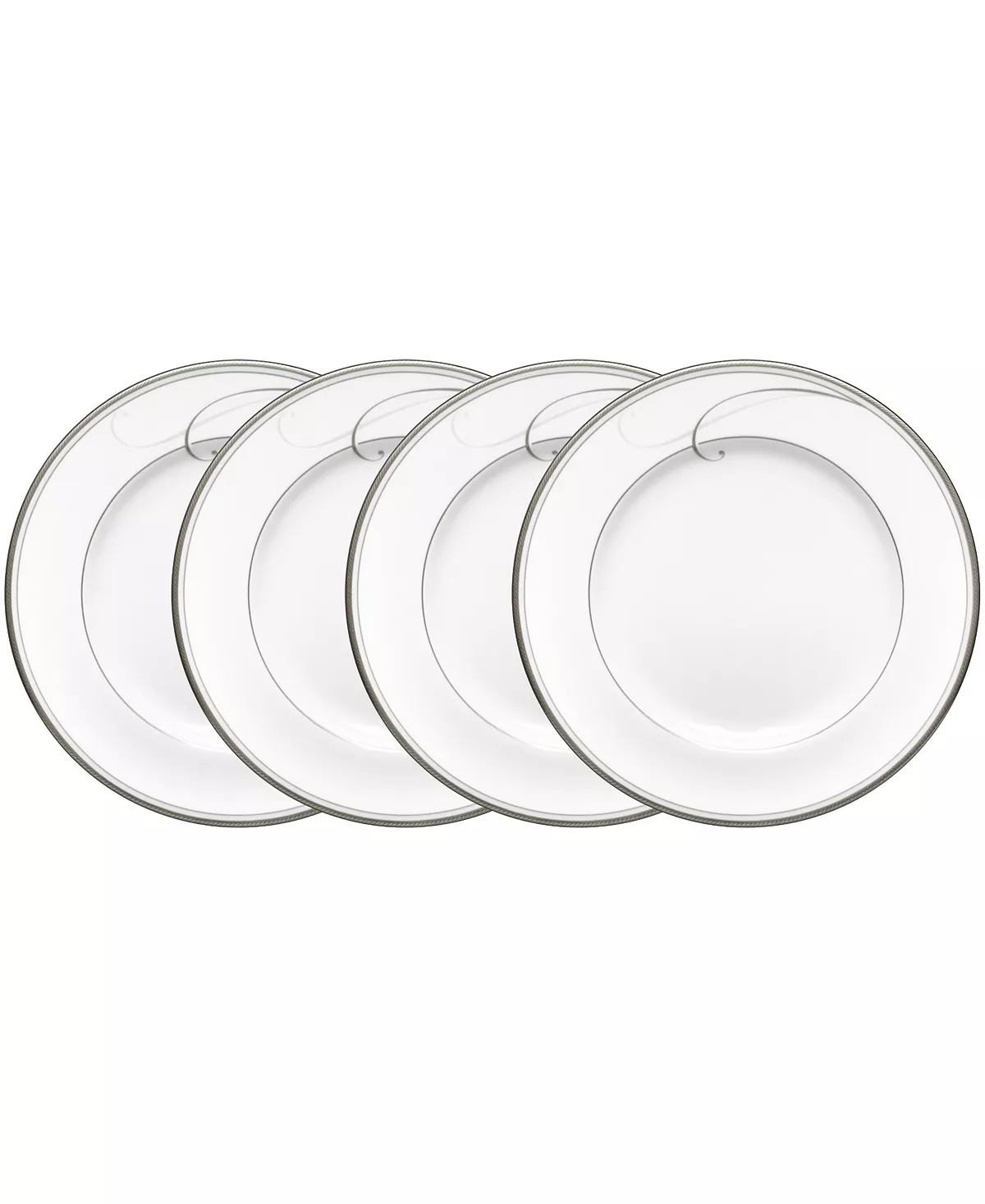 Platinum wave is a more relaxed approach to formal dinnerware. Keeping to a simple modern feeling, this pattern interprets a classic scroll motif in an updated and playful manner. Washing against the rim of the plate, the platinum waves create a bold, yet elegant presentation.