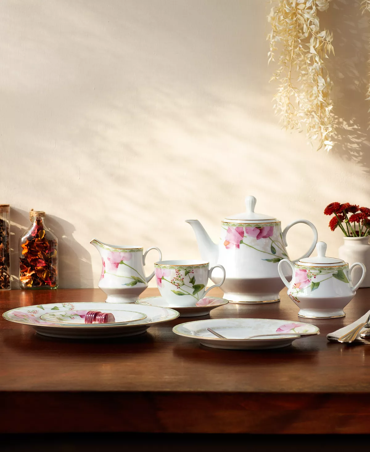 - Set includes – one 10.5″ dinner plate, one 8.25″ salad plate, one 6.25″ bread butter plate, one 6″ cup and one 6″ saucer