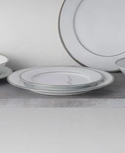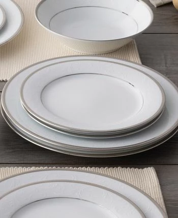 Regina platinum features a white-on-white, raised enamel, scroll-like design edged in etched platinum for a simple, classic look. Crafted in white porcelain, Regina platinum offers traditional place setting components, additional items, and a wide selection of serving pieces.