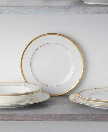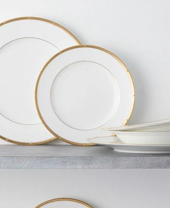 Crafted on classic bone China, Rochelle gold is a fine dinnerware pattern with a band of etched gold-tone with raised, gold-tone dots for a classic look. Rochelle gold offers traditional place setting components, additional items for individual service, and serving pieces.