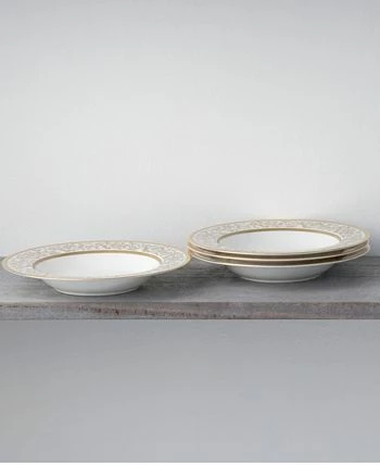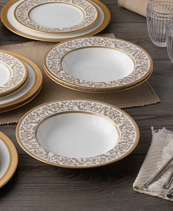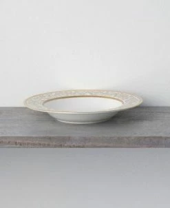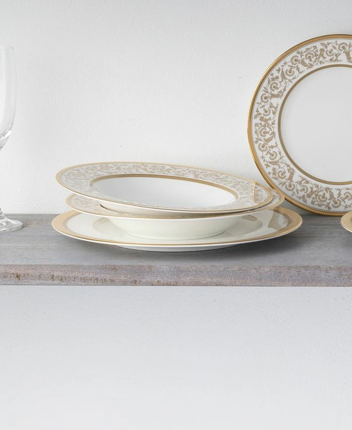 Summit gold is a mix of textures and visuals, pairing traditional and modern elements on bone China. Incorporated for more depth are touches of a finely speckled gray and monochromatic looping floral elements.
