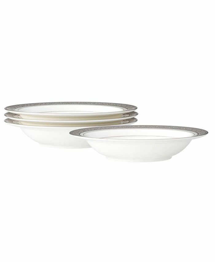 Summit platinum is a mix of textures and visuals, pairing traditional and modern elements on bone China. Incorporated for more depth are touches of a finely speckled gray and monochromatic looping floral elements.