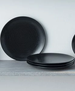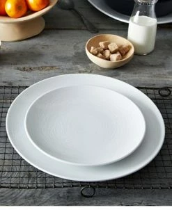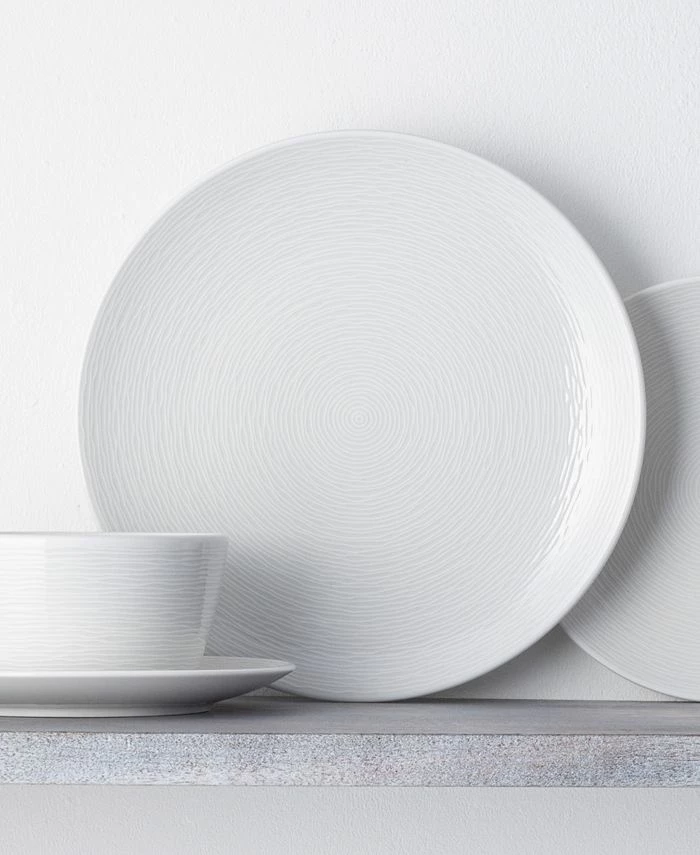 Swirling concentric circles form a tonal pattern, bringing an organic look and fresh feel to these dinner plates from Noritake.