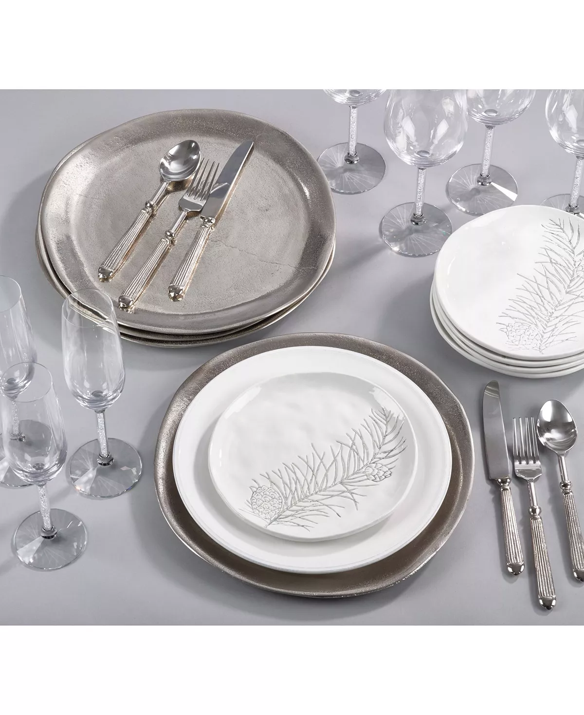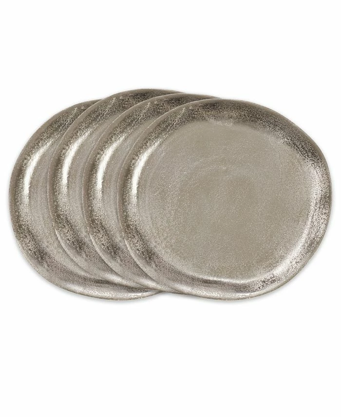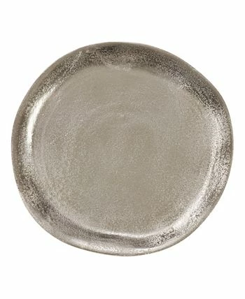 With a lovely gleaming finish and uneven round shape, this set of aluminum organic chargers will make a wonderful addition to your tableware. The can be dressed up for special occasions, but also pared down for more casual meals. Use with solid color runner and napkins.