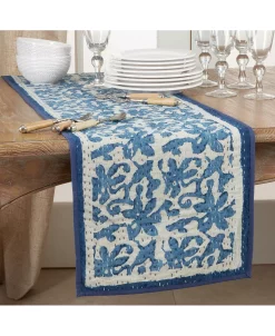 This one-of-a-kind block print floral kantha stitch table runner is absolutely gorgeous and it will help you set a truly unique table. It catches the eye instantly without overwhelming the tabletop. Made with cotton, the long table runner delivers lasting use.