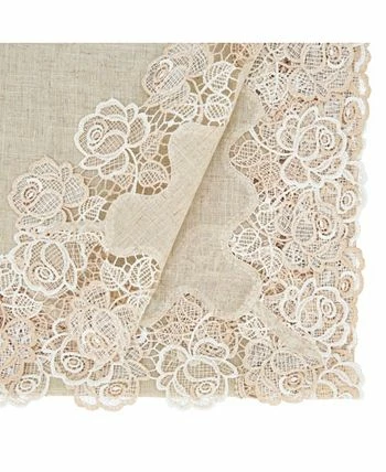Subtle and exquisite this beautiful, unique lace rose border tablecloth will completely transform your home decor. A wonderful accent piece that brings reminiscences of an old world, this linen blend tablecloth is a great way to cover old tables and give them a stylized look.