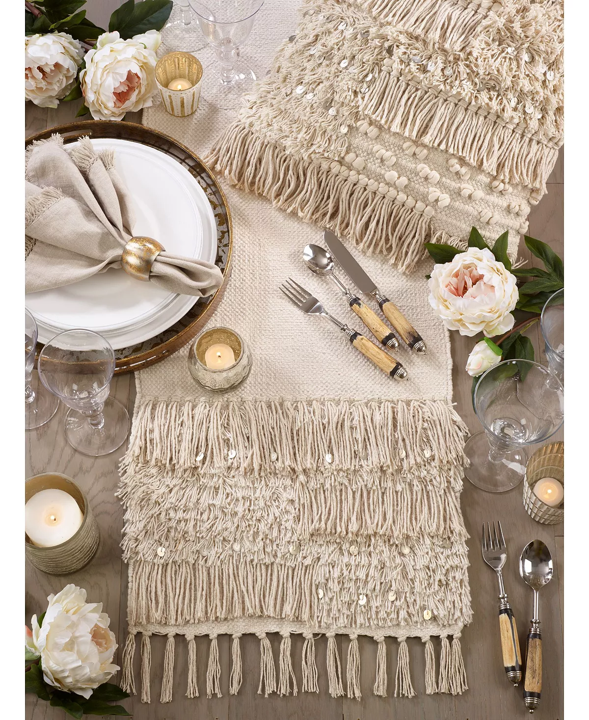 This lovely long table runner will be your go-to piece for every dinner you host. Pair the Sequin Moroccan Cotton Runner with same tones and colors for a natural, blended look or use dark colored placemats and napkins for a contrasting decor.