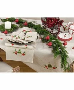 Bring a dash of whimsical festive charm to your holiday table with this adorable embroidered Christmas table runner. The small, delicate embroidery leaves you plenty of room to play with colors and patterns. It’s a great piece for the entire winter season.