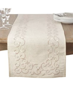 Fancy embroidered flourishes bring an elegant feel to this table runner from saro lifestyle with a natural linen-blend construction.