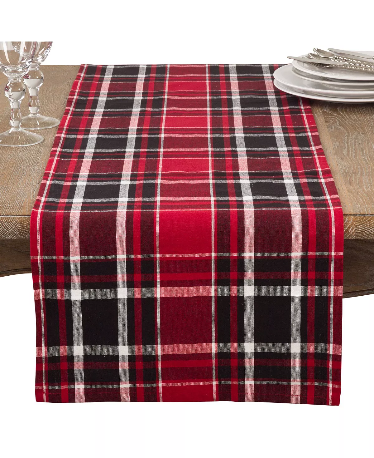 Set a traditional table with this cotton table runner from saro lifestyle in a classic plaid pattern that is ideal for everyday dining.