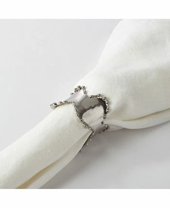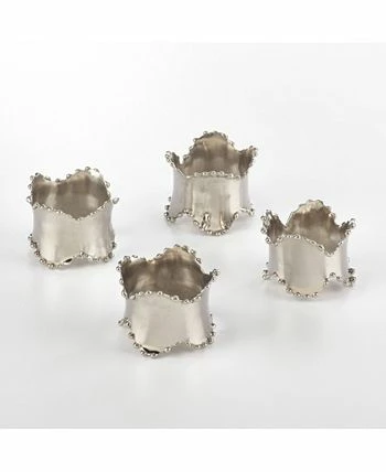 The classic design napkin rings With wavy cut edge bring a contemporary twist to a classic design. The small studs around the rings edge add texture and dimension to the setting. Pair with plain, light toned table napkins and placemats.