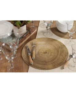 Set a lovely, natural table decor with these wood print placemats that will also help protect your table against spills. The set includes four pieces, which beautifully resemble tree trunks. Their natural look makes them very easy to pair.