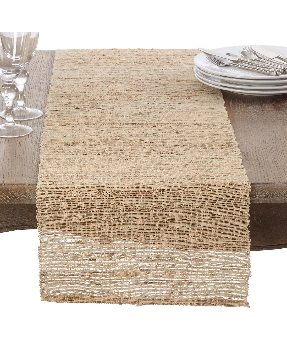 This woven runner from saro lifestyle will bring natural texture and warm style to your table whether left on its own or layered with a colorful print or subtle solid.