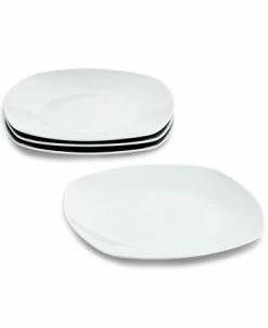 Add classic style to your dining room with the Basics Soft Square dinner plates from The Cellar, featuring a solid white ground.