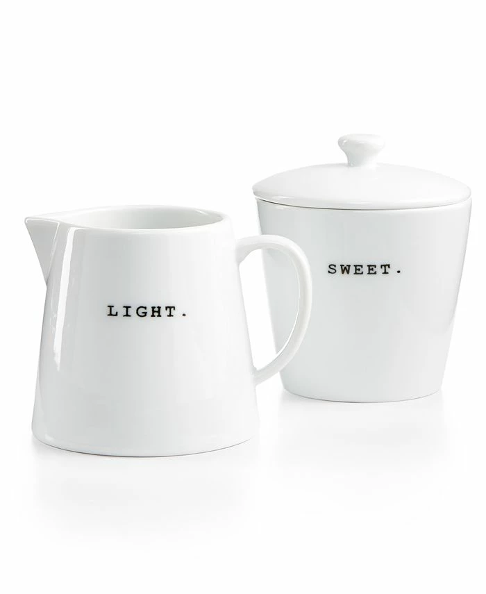 In The Cellar Whiteware Words Collection, verbal whimsy combines with versatile white porcelain to create this charming sugar bowl and creamer.