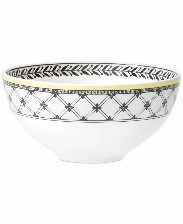 With a black-and-white trellis pattern and pale yellow band in premium porcelain, the Audun Ferme individual bowl coordinates beautifully with the entire Audun country dinnerware collection from Villeroy & Boch.