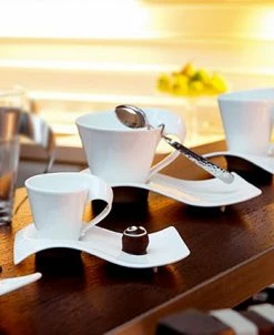 A hybrid of Asian-inspired style and modern details, the New Wave Caffé mug from Villeroy & Boch’s dinnerware and dishes collection lends impromptu or informal gatherings sophistication. The unique, shape and warm, creamy glaze combine for a truly eye-catching effect. 10 oz capacity.