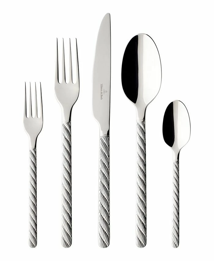 Montauk flatware offers a stunning rope design which brings a beautiful nautical touch to any table setting. 18-10 stainless steel means strength and enduring durability. The polished finish will stay beautiful for years to come.