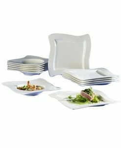 - Set includes 6 of each: 10.5″ dinner plate, 9.5″ salad plate, 10.25″ rim soup bowl, 3″ Dia. teacup and 7″x 6″ tea saucer