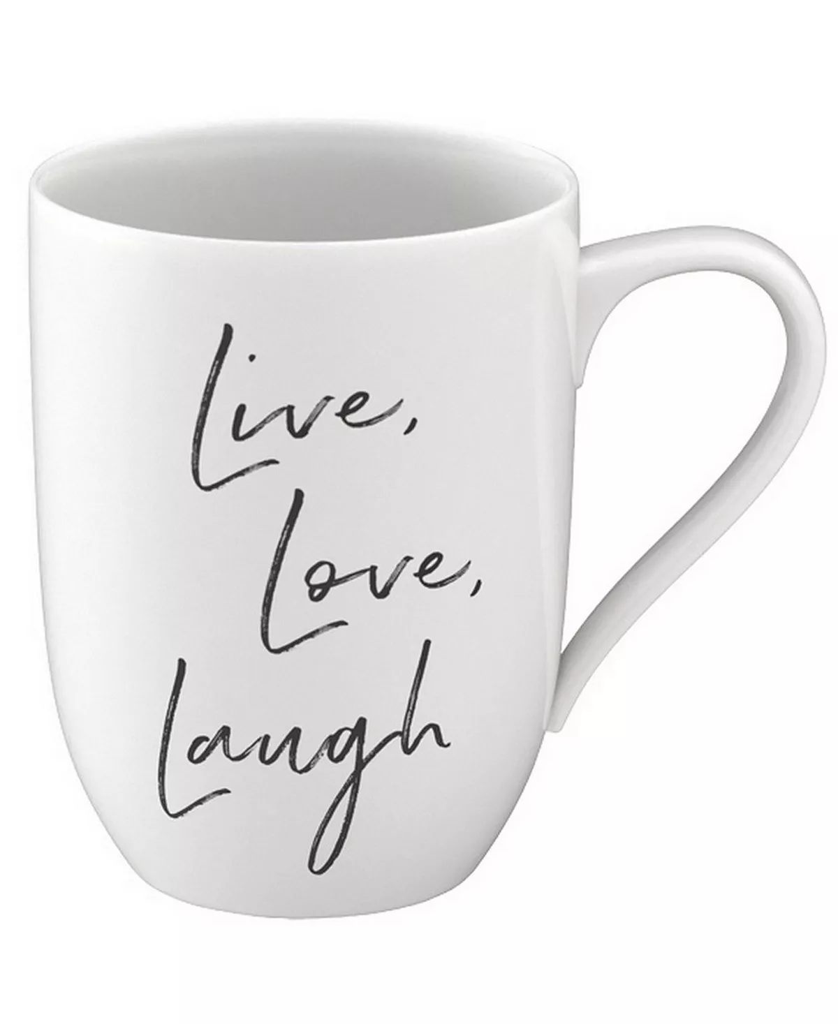 Add a bit of whimsy to your day with Villeroy & Boch’s Live, Love, Laugh mug. The striking black handwritten styled message is set against our creamy white porcelain. Perfect to give friends, relatives or find that special message that represents you.