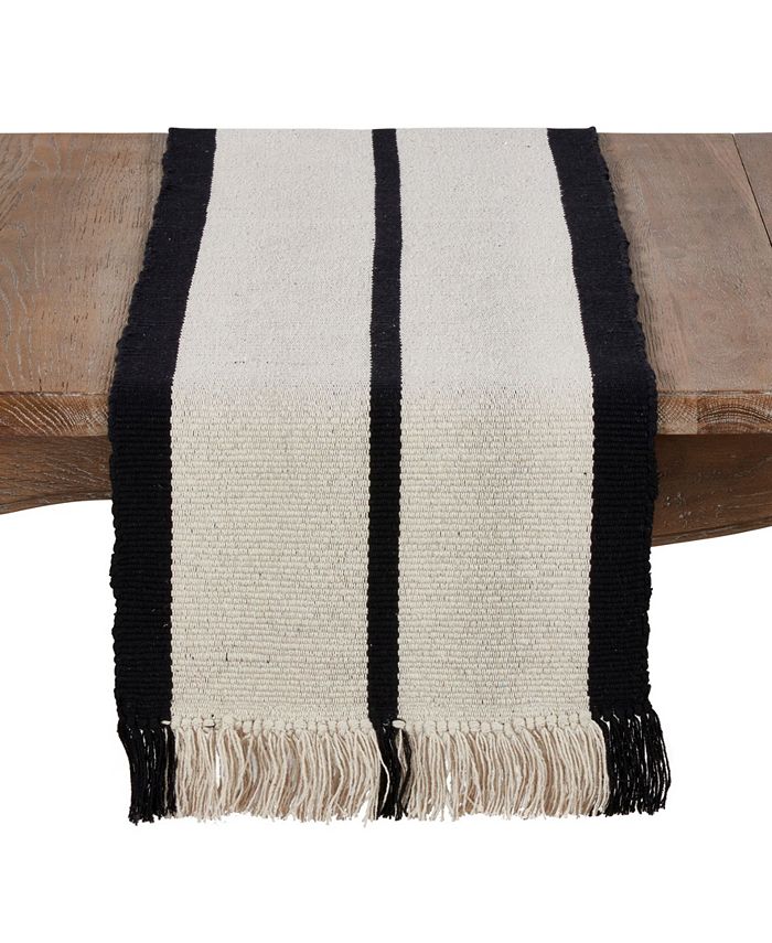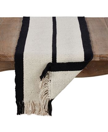 Inspired by traditional heavy rugs, this beautiful table runner brings rustic charm to your table. The woven pattern ends in thick fringes that complement its style. The heavy rug table runner makes a unique addition to your dining.
