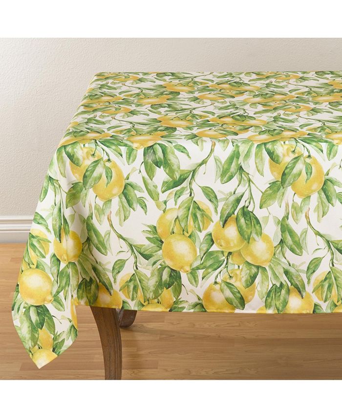Protect your table with the printed lemon tablecloth, a bright and cheerful topper that adds a summer vibe to your table decor. Featuring vivid colors for both lemons and leaves, the tablecloth pairs easily with solid colors and lighter tones.