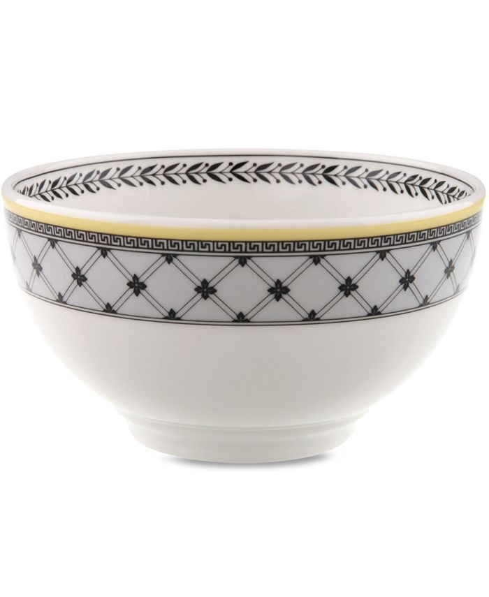 Audun’s accessory pieces coordinate with the yellow, black, and white mix-and-match dinnerware pattern. In Ferme, featuring a quaint French farm scene.