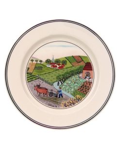 A farmer plows his way through the countryside on this Design Naif bread and butter plate, featuring premium Villeroy & Boch porcelain.