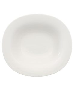 Fresh modern from Villeroy & Boch dinnerware. The dishes in this set are sheer white china in oval form that inspires simply harmonious dining. A soft fluidity and radiant glaze give this rim soup bowl quiet elegance and lasting appeal.
